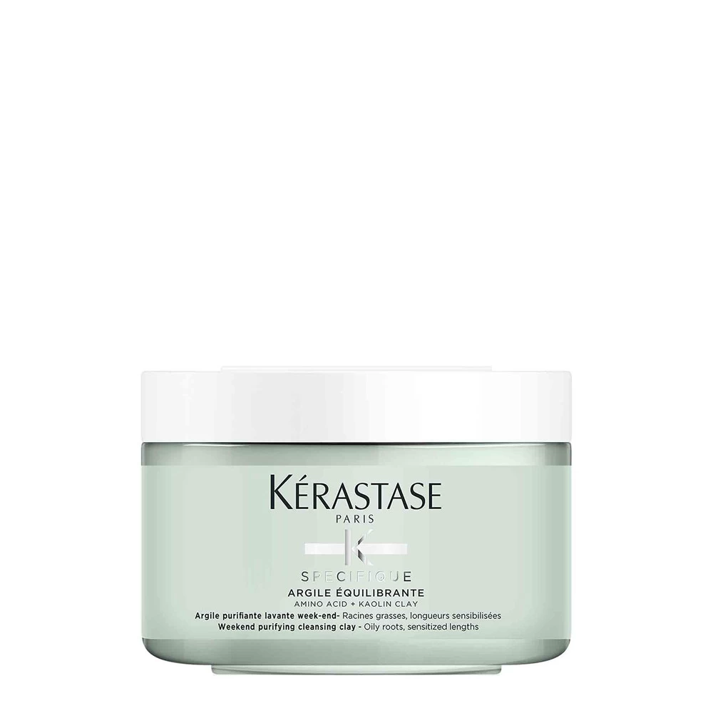 Argile Équilibrante Kérastase : argile purifiante lavante pour racines à tendance grasse et longueurs sensibilisées.