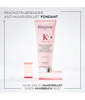 Kérastase a développé le Fondant Renforcateur de la ligne Genesis spécialement pour les cheveux qui ont tendance à perdre leurs cheveux à cause de la casse. Grâce à la formule en apesanteur de ce produit reconstructeur anti-chute de cheveux, la fibre capillaire est immédiatement renforcée. Résultat : vos cheveux gagnent en résistance, en vitalité, en souplesse et en brillance, ils sont plus faciles à coiffer et les cassures sont réduites.